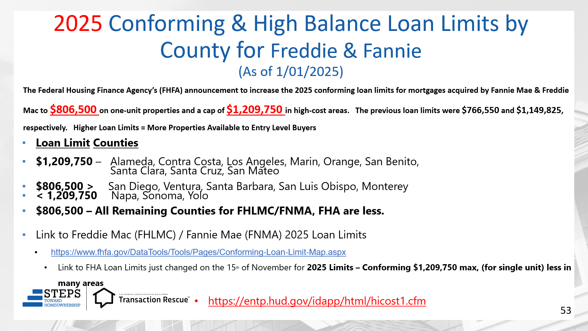 • Information about FHA, Conventional, Jumbo, and Special Loan Program